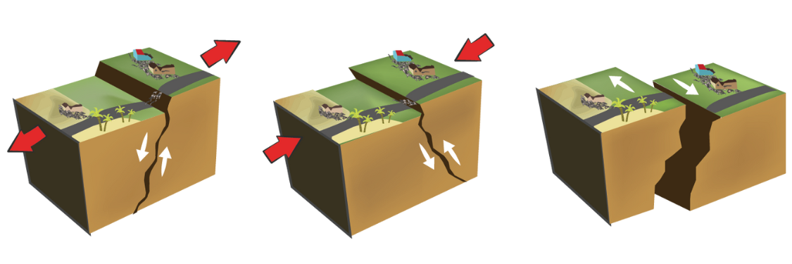 La surface de la Terre n’est pas figée, au contraire, elle est en constant mouvement. Cette activité est surtout visible au bord de grandes fissures dans l’enveloppe terrestre : les failles. Le séisme est dû à une cassure ou un déplacement brutal des roches sous la surface de la Terre. Cette cassure ou ce déplacement va libérer brusquement l’énergie accumulée par les mouvements internes de la Terre, à proximité de ces failles.