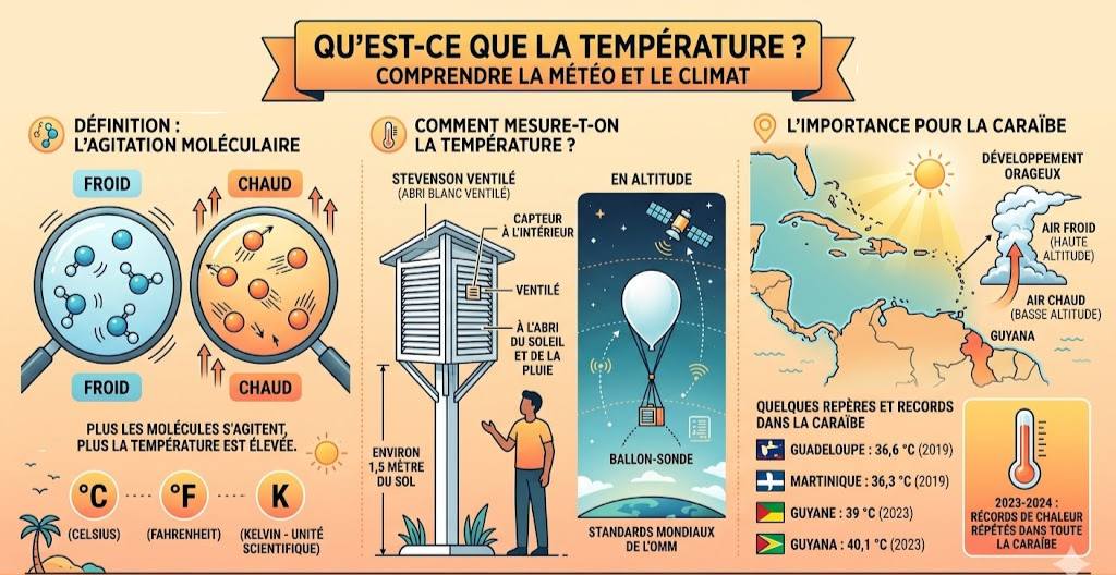 Source : Article adapté à partir de Météo-France –: Qu’est-ce que la température ? | Météo-France