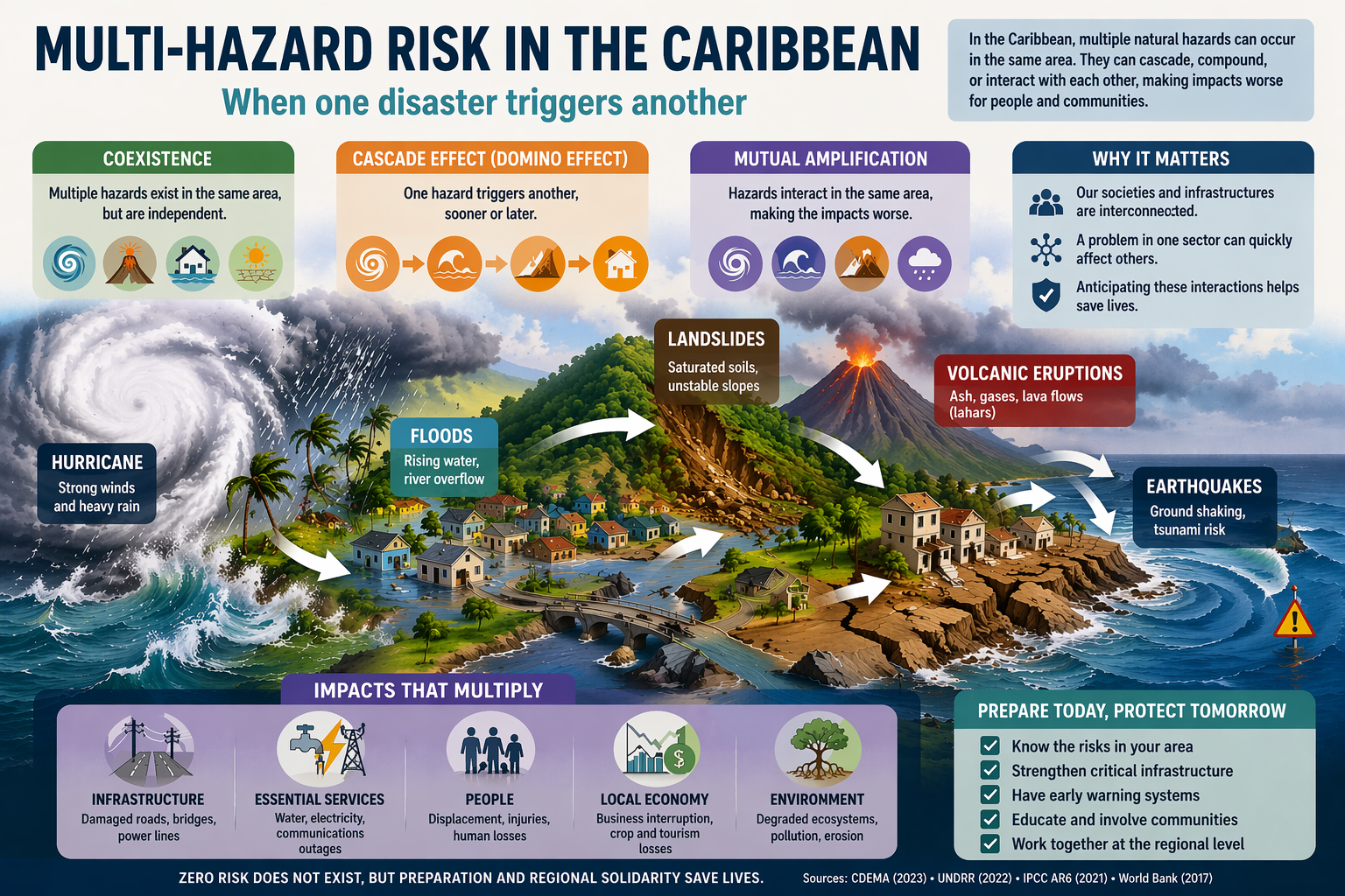 In the Caribbean, disasters do not always occur in isolation; this is what is known as multi-risk. They can occur in succession, accumulate, or even exacerbate one another.